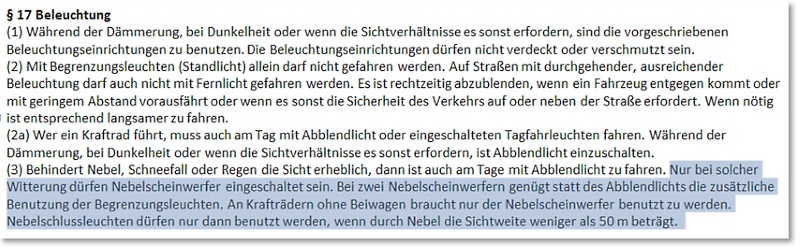 Wann dürfen Nebelscheinwerfer und Nebelschlussleuchten eingesetzt werden?